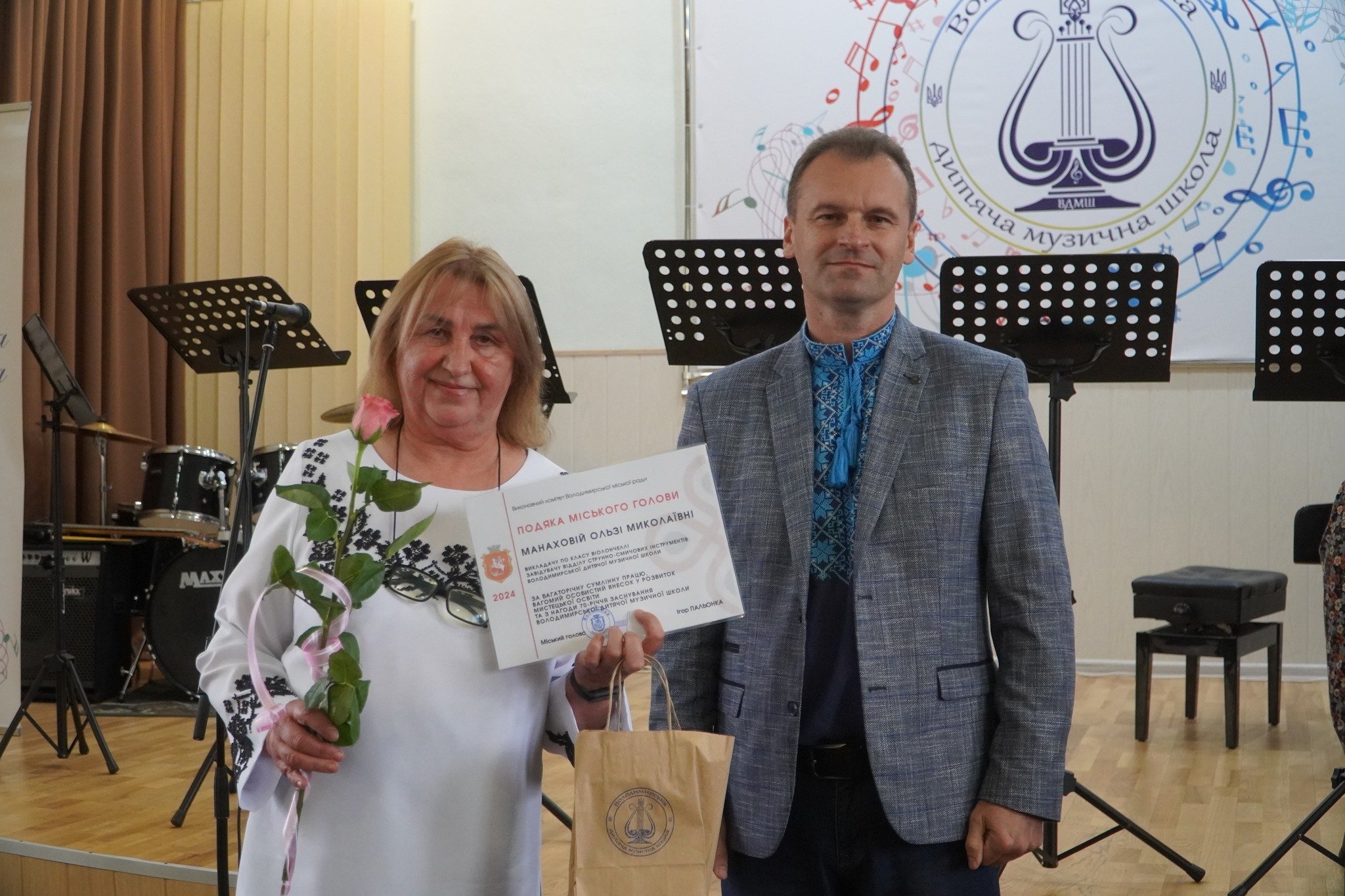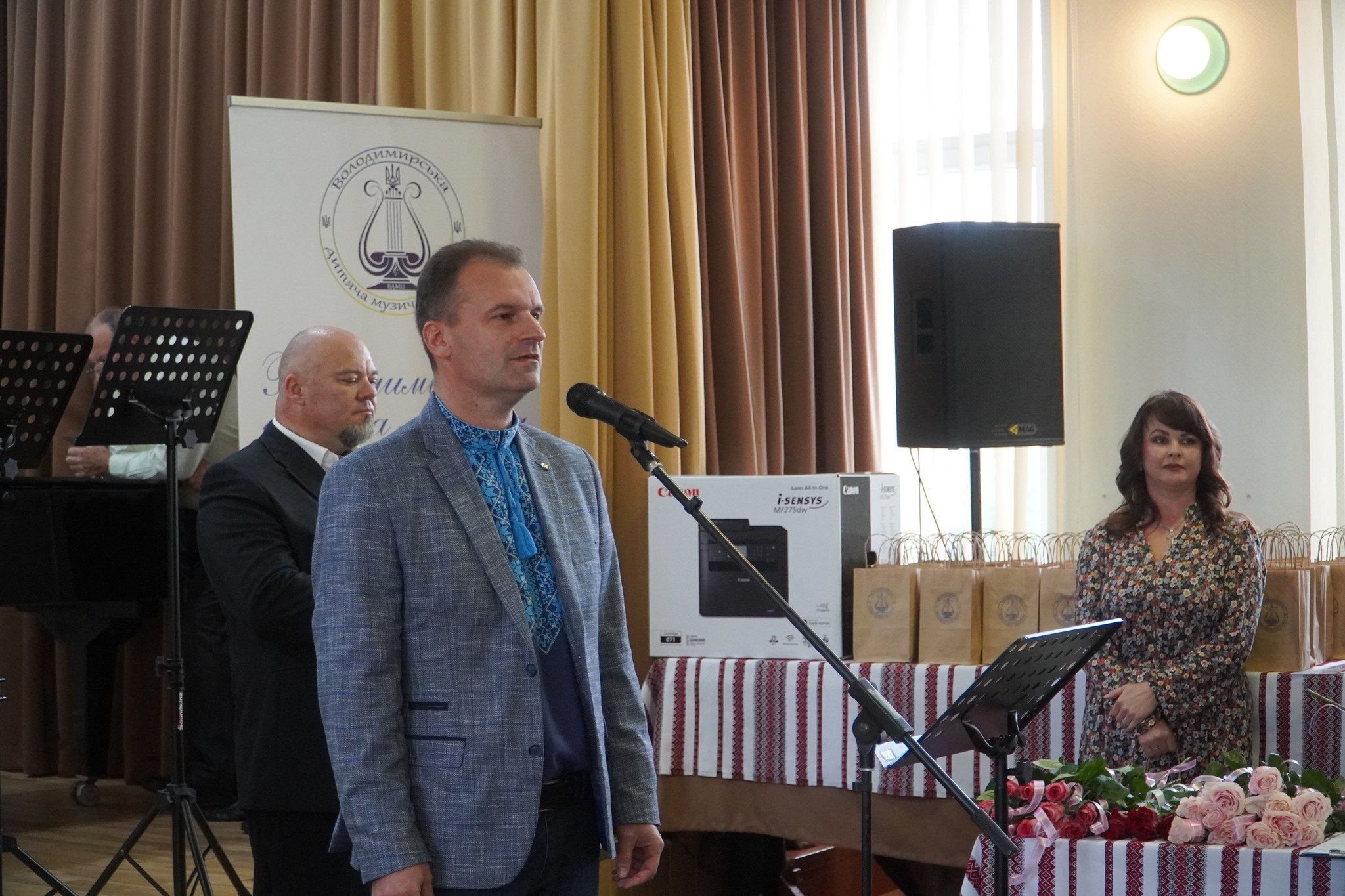 Узяв слово і міський голова Ігор Пальонка, привітав викладачів, що відкривають дітям світ музики і в кожного зі своїх учнів вкладають часточку своєї душі, подякував їм за багаторічну мистецьку і педагогічну працю. Принагідно висловив вдячність і нашим захисникам, завдяки яким діти мають можливість надалі навчатись улюбленої справи. Побажав школі процвітання, а вихованцям та їхнім наставникам – нових творчих досягнень.Від себе особисто Ігор Пальонка вручив школі у подарунок принтер, а викладачів нагородив преміями та подяками міського голови. Також із вітальним словом звертались до винуватців свята заступник міського голови Андрій Гудим, начальниця відділу культури і мистецтва Олена Омелюх, колишній директор та викладач школи Андрій Шоцький, директор педагогічного фахового коледжу Микола Савельєв, заступниця директора Володимирської художньої школи Оксана Стасюк.