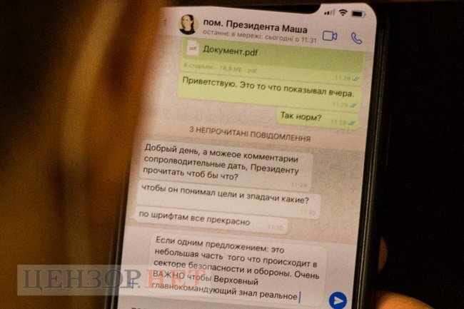 Контакт «пом. Президента Маша» попросив Завітневича надіслати супровідні коментарі до документу, який відправив нардеп, щоб президент «розумів мети і завдання».