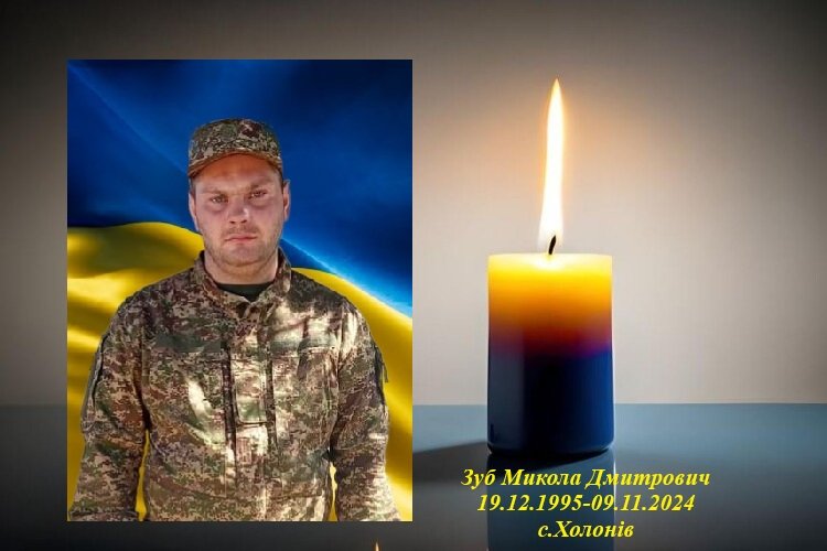 На щиті додому повертається Захисник Зуб Микола Дмитрович, 19.12.1995 р.н., житель с. Холонів.