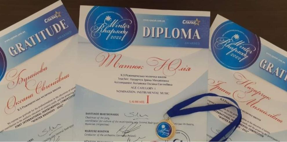 Цьогоріч вперше відбувся Міжнародний інструментальний конкурс «Зимова рапсодія-2022». У конкурсі взяла участь вихованка Рожищенської музичної школи Юлія Татюк.