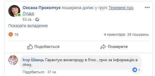 Лучанин Ігор Швець пообіцяв 5 тисяч гривень винагороди за інформацію про особу вандала, який на Алеї ліхтарів в центральному парку Луцька виламав ліхтар.