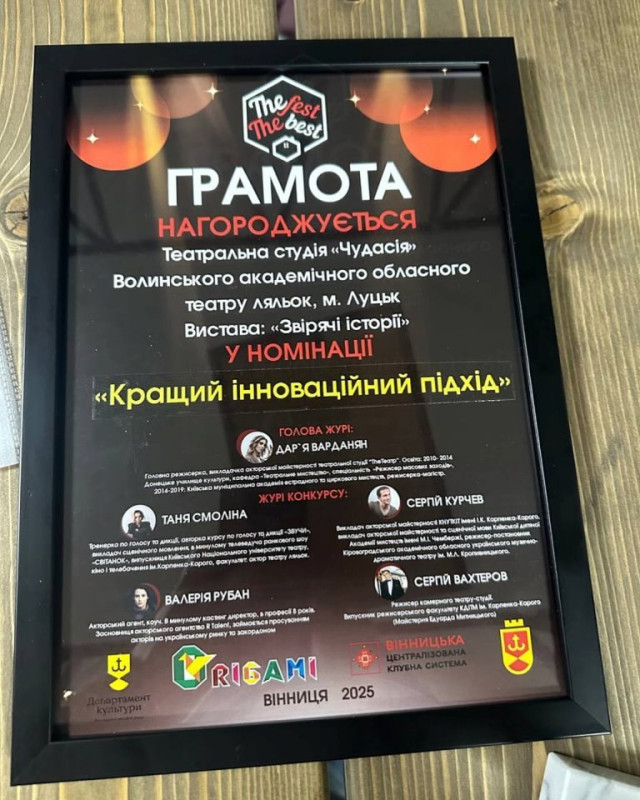 Вихованці театральної студії «Чудасія» Волинського академічного обласного театру ляльок уперше цього року стали призерами престижного конкурсу. Юні актори брали участь у Всеукраїнському фестивалі дитячих та молодіжних театральних колективів «Мельпомена-Fest», що проходив у Хмельницькому, і вибороли почесне третє місце.