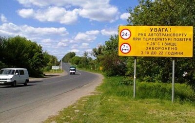 Так, в денний час доби при температурі повітря вище за +28 градусів буде введено обмеження і заборону на пересування дорогами загального користування державного значення вантажного транспорту фактичною масою більше 24 тонн і навантаженням на вісь більше 7 тонн.