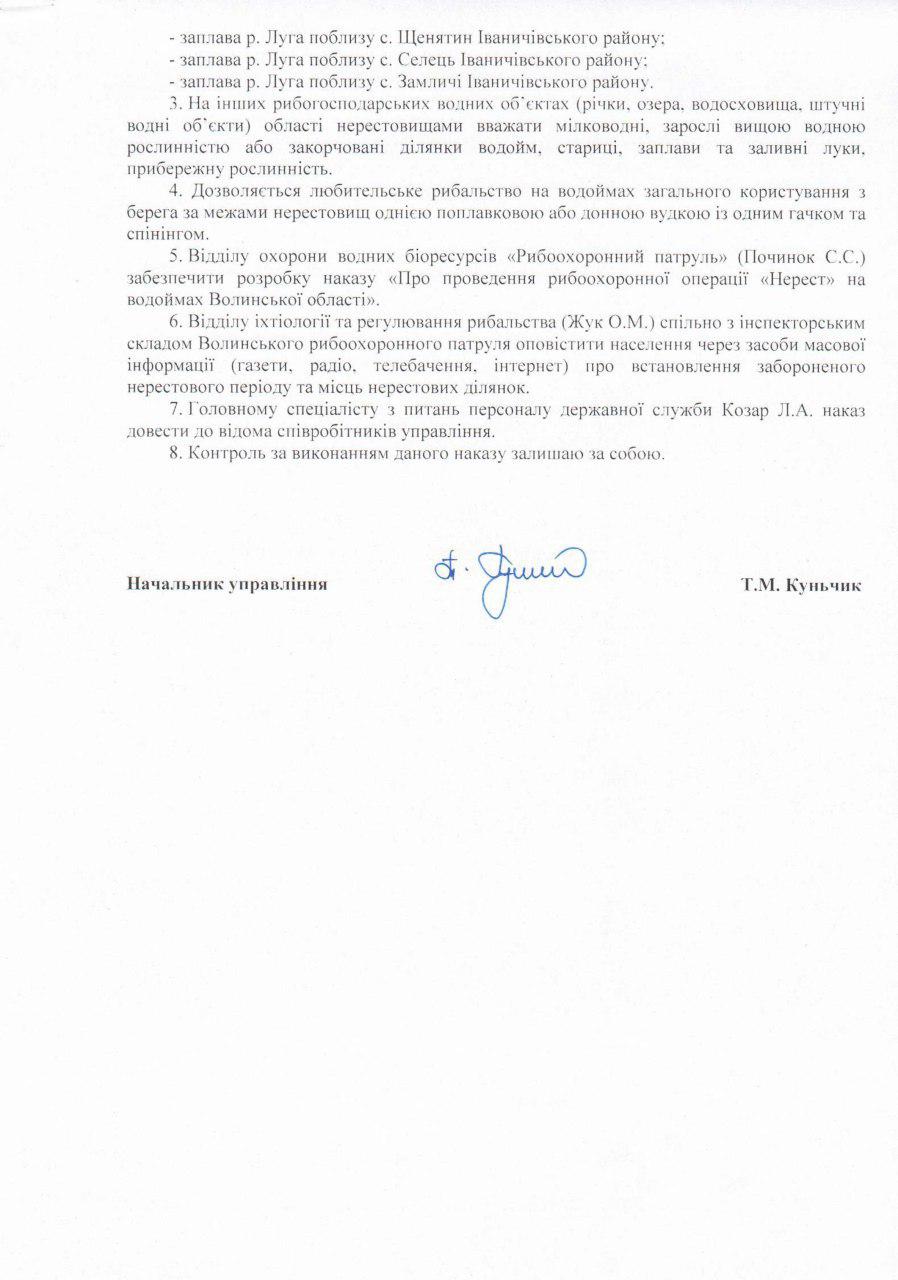 Згідно з наказом Управління Державного агентства рибного господарства у Волинській області,