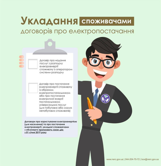 Договори про користування електричною енергією (для населення) та про постачання електричної енергії, укладені споживачами з обленерго припиняють свою дію з 01 січня 2019 року.», – роз’яснює Оксана Кривенко.