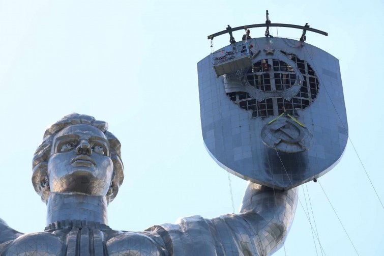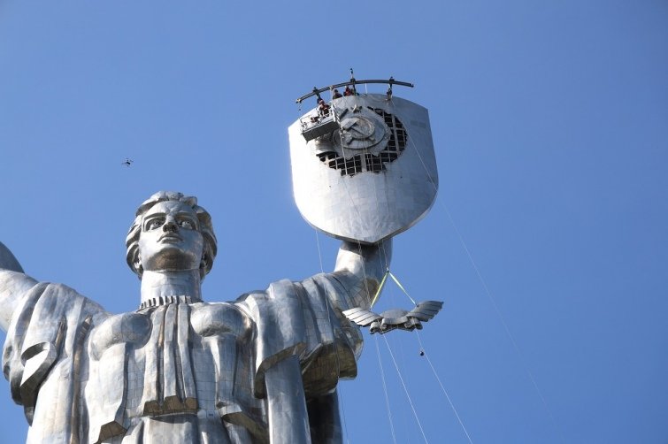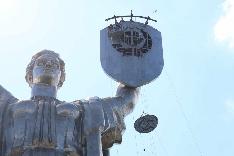 У вівторок, 1 серпня, в Києві повністю демонтували радянський герб з монументу «Батьківщина-мати». Повністю роботи із заміни герба на український тризуб мають завершитися до Дня незалежності, 24 серпня.