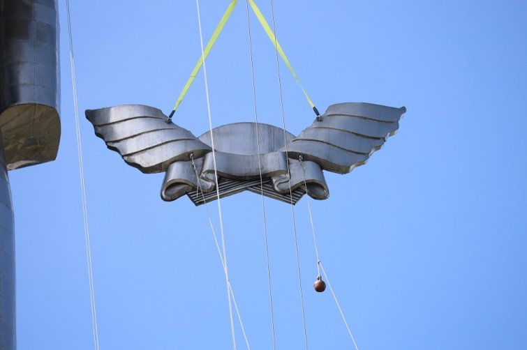 Сьогоднішні роботи почали з демонтажу нижнього фрагменту – частини вінка з обплетених стрічкою колосків. Кілька днів тому демонтували першу частину вінка.