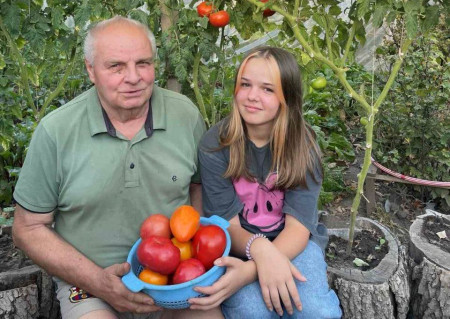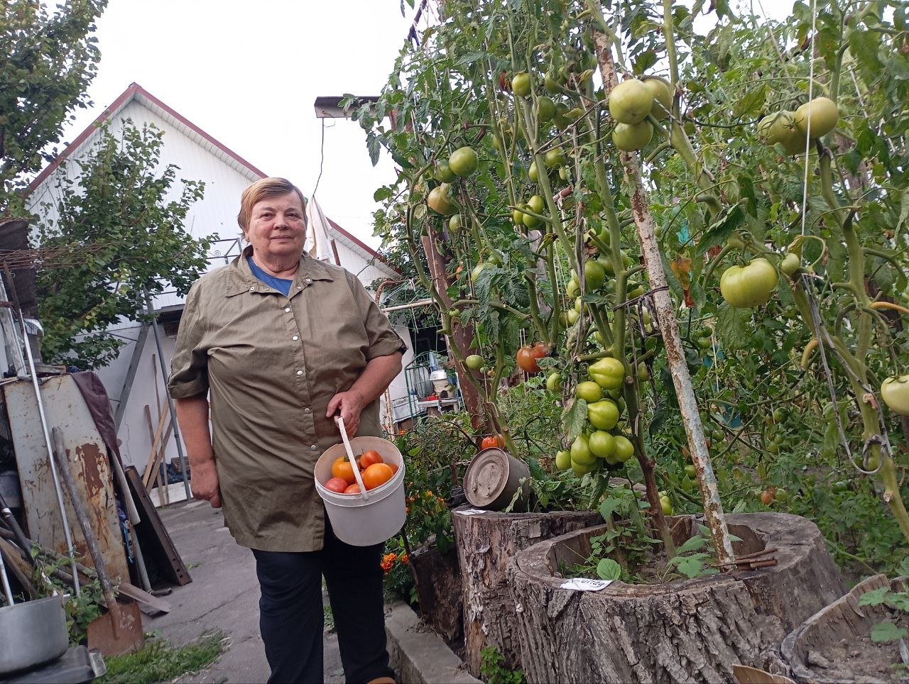 «Одного року я вирішив посадити кілька кущів помідорів у пластмасових відрах, – згадує чоловік. – З цього нічого не вийшло. Відра швидко нагрівалися від сонця, земля в них тримала тепло, і корені помідорів просто попеклись. Тоді замість відер я спробував використовувати пеньки з волоського горіха. Його стовбур був вже трухлявий всередині і я зрізав дерево. Порізав на колоди, вичистив їх всередині, засипав туди ґрунт і висадив розсаду».Молоді рослини швидко прижились і дали щедрий урожай. Тому чоловік продовжує цей експеримент. Цьогоріч посадив помідори у пеньках не лише з волоського горіха, а й старої яблуні. І знову все вийшло – на кожному кущі помідорів у пеньках цьогоріч вже дозріло по відру. Фітофтори на городі у лучанина нема – чоловік завчасно скропив препаратами «Помідорчик» і «Квадріс».Найкраща помічниця луцького городника-експериментатора – 13-річна внучка Настя. Дідусь радіє, що хоч їй може передати свій досвід. Єдиному сину Михайла та Софії Ігнатюків минулоріч мало виповнитися 50 років. Однак військовослужбовець 14-ї ОМБр Валентин Ігнатюк у березні 2023 року загинув під Куп’янськом на Харківщині.Недавно батько військовослужбовця вчергове переніс інфаркт – горе підкосило його. Тому за помідорами цьогоріч більше доглядає дружина городника Софія Михайлівна.«Ми підтримуємо одне одного, а нас тримає на плаву земля, – каже Софія Ігнатюк. – Фізична праця хоч трохи допомагає заглушити нестерпний біль втрати».