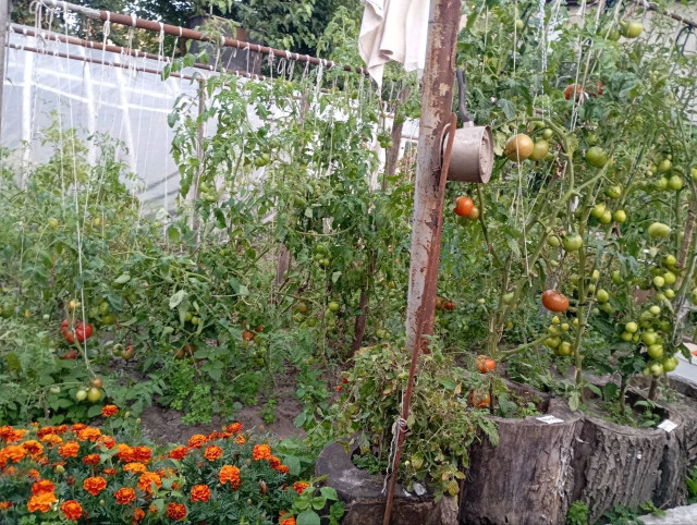 Одинадцять років тому подружжя Михайло та Софія Ігнатюки придбали житло у приватному секторі. Поряд з будинком була невелика земельна ділянка розміром у півтори сотки. Нині тут, як у рукавичці, задіяний кожен квадратний сантиметр. На ділянці росте кілька фруктових дерев та декоративних кущів, у невеликій прибудові кудкудакають кури, на двох рядках господиня посіяла чорнобривці. Вся інша площа – під городніми культурами. Помідорів серед них найбільше. Для цих овочів чоловік спеціально збудував теплицю.