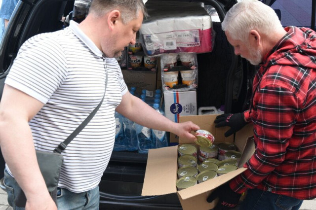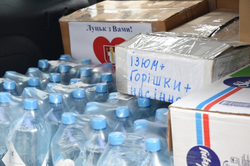 Перед від’їздом його завантажили необхідними речами, які просили наші захисники: турнікети – 10 шт; засоби гігієни – 2 ящики; вологі серветки – 8 ящиків; сухі серветки – 3 ящики; м’ясні консерви – 3 ящики; рибні консерви – 1 ящик; галети – 6 ящиків; джем – 1 ящик; солодощі – 3 ящики; вода – 5 упаковок; рис – 20 коробок; гарнір – 2 ящики; сухофрукти – 1 ящик; мівіна – 6 ящиків; туалетний папір.