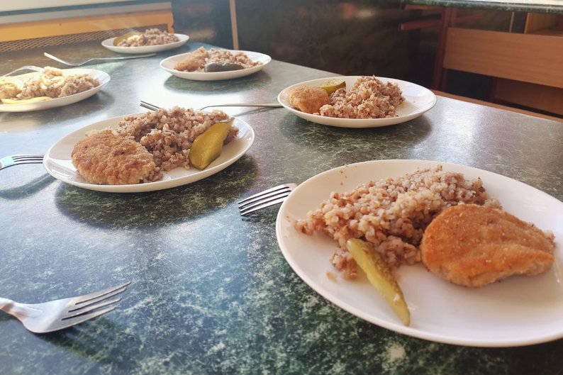 У початкових класах ліцею № 9 навчається майже 700 учнів. Харчують дітей у дві зміни, розповіла завідувачка їдальні Ірина Демидюк. Щодня кухарі починають готувати о 5 ранку.4 листопада у меню була гречана каша, котлета, квашений огірок, сік і бутерброд з твердим сиром.