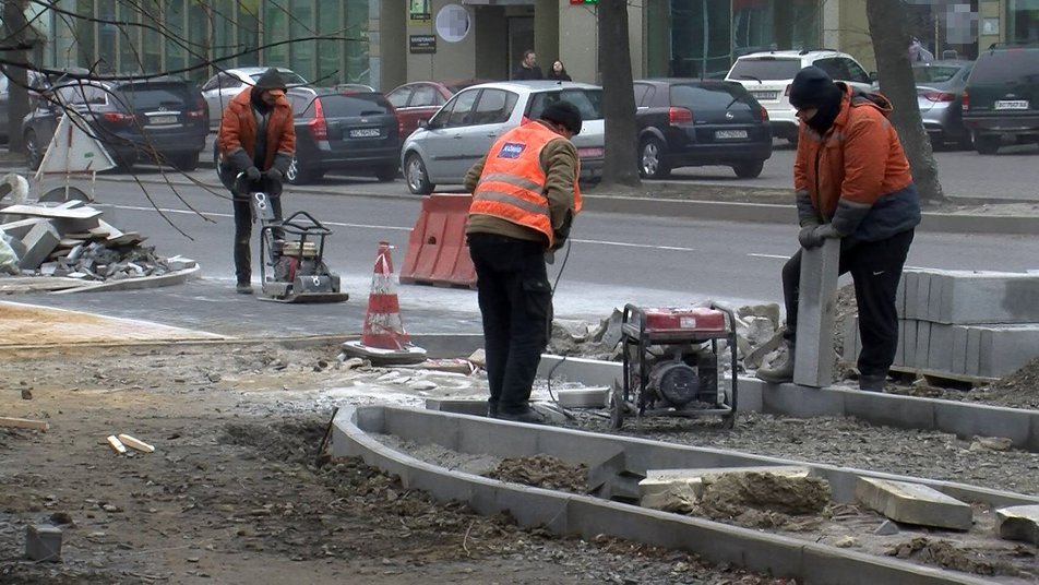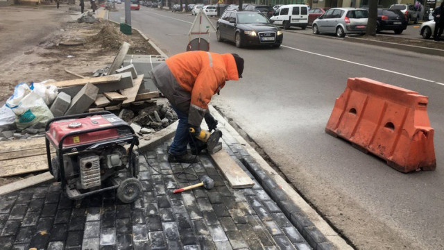 Зараз на проспекті вкладають бруківку на технічних смугах поблизу автопарковок, на пішохідних та велосипедних доріжках.