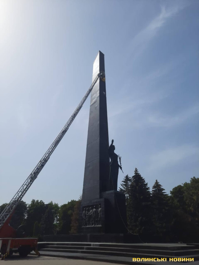 На меморіалі Вічної Слави в Луцьку розпочато демонтаж радянської зірки, яка розташована на центральному обеліску з бронзовою скульптурою Матері-Батьківщині.