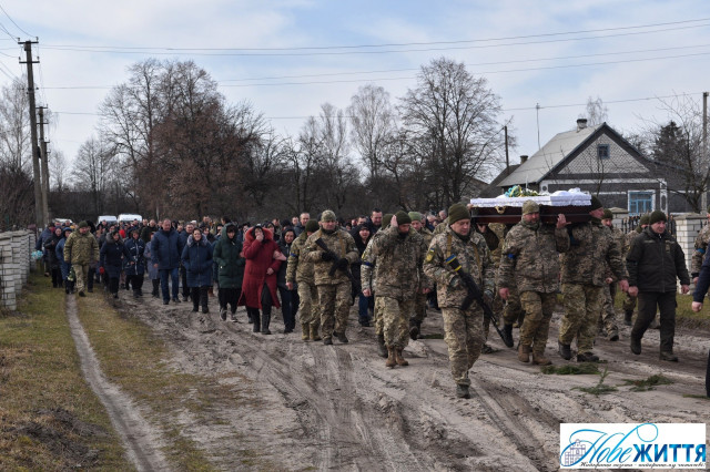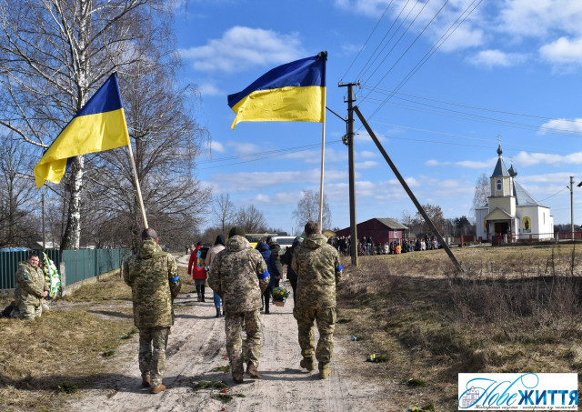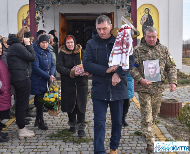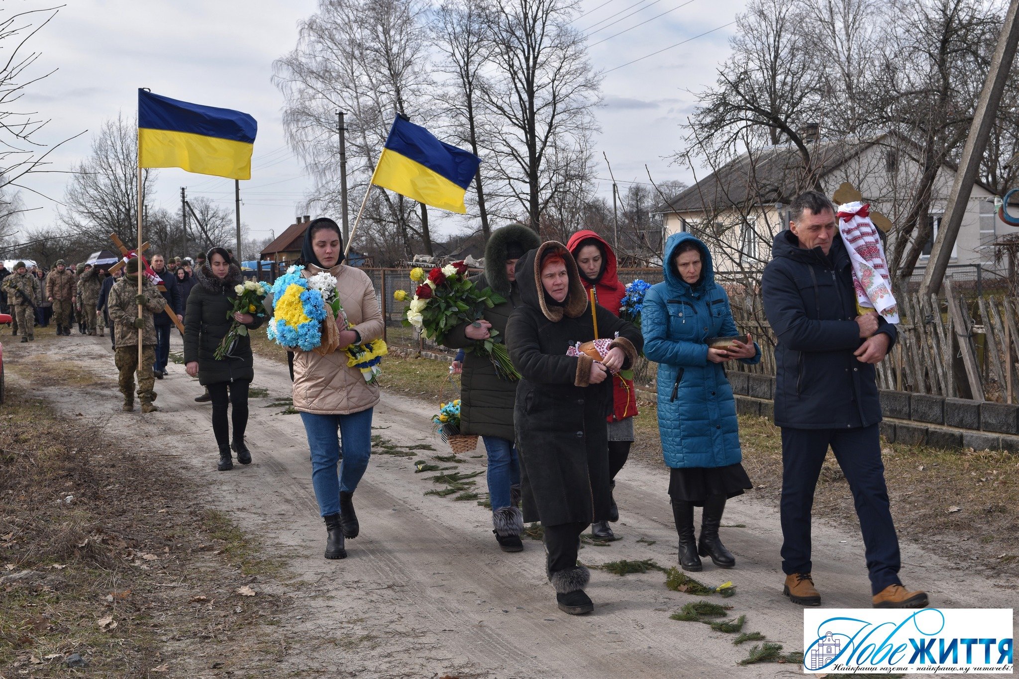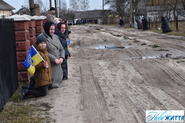 Пропрощатися із захисником та віддати йому останню шану прийшли рідні, друзі, побратими, односельчани. З оберемками квітів та навколішки зустрічали та проводжали в селі жалобний кортеж.