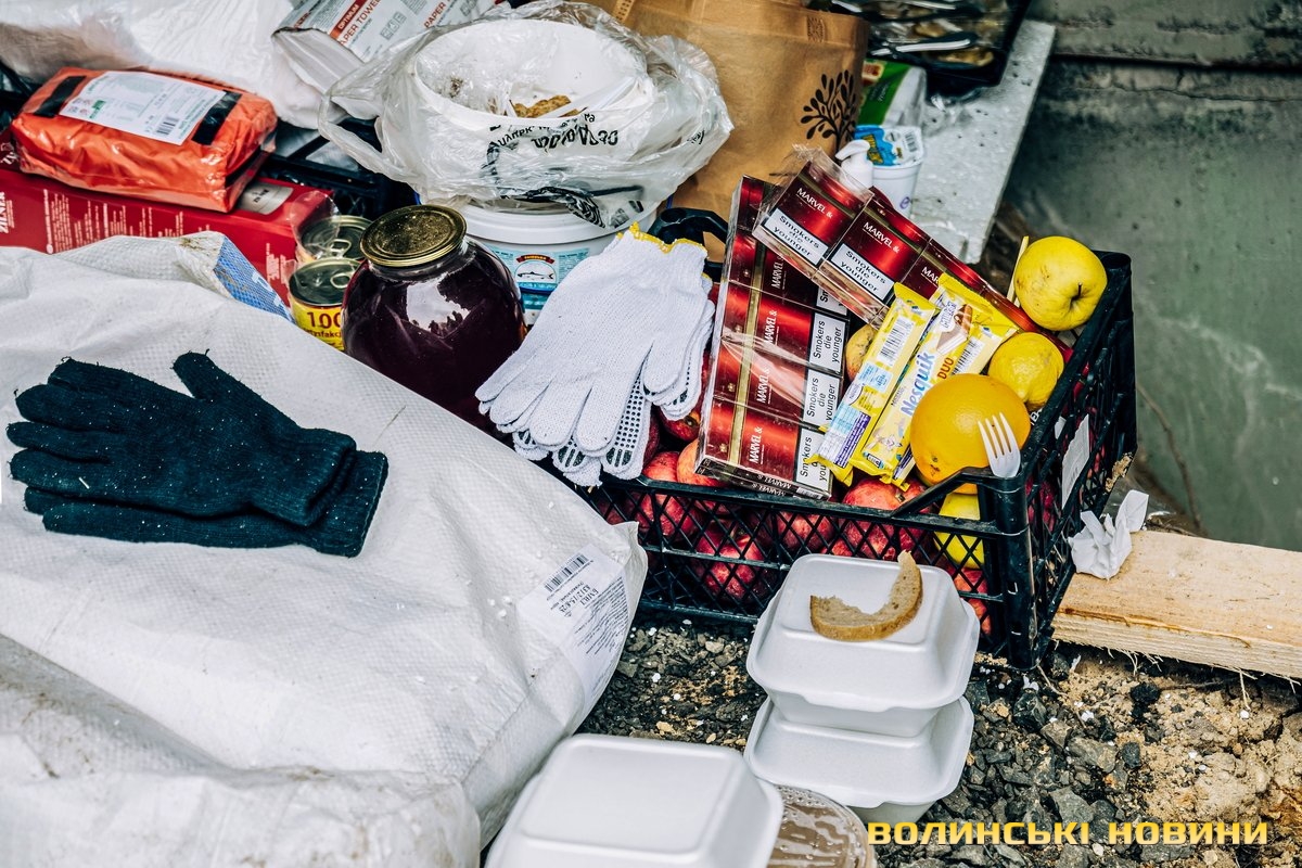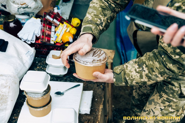«Гей, хлопці, у нас тут є шоколадки, хочемо поділитися. І фрукти», – гукає білява дівчина, визираючи з авто після проходження блокпоста. І миттю на захисній сітці красуються жовті лимони, яблука, помаранчі.«Волонтери нам привозять дуже багато їжі. Щойно привезли фрукти, шоколадні батончики, лимончики. Особливу підтримку відчуваємо від місцевих – волинян. Все, що попросимо, привозять! Потрібен був пінопласт – маємо. Ліхтарі, батарейки, акумулятори, гарячу їжу і навіть макарунси – все будь ласка», – хваляться бійці тероборони.І справді, за 20 хвилин нашого перебування поряд із блокпостом тричі проїжджали волонтери.