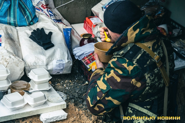 Чужинцям зайти за територію блокпосту – зась. Кремезні сини України зі зброєю в руках ні на мить не дадуть засумніватися – тут мають панувати порядок та військова дисципліна.За кілька днів волинські захисники встигли не лише звести справжню фортифікаційну споруду з окопами, а й досконало облаштувати побут.Біля бліндажа на польовій кухні апетитно кипить обід.