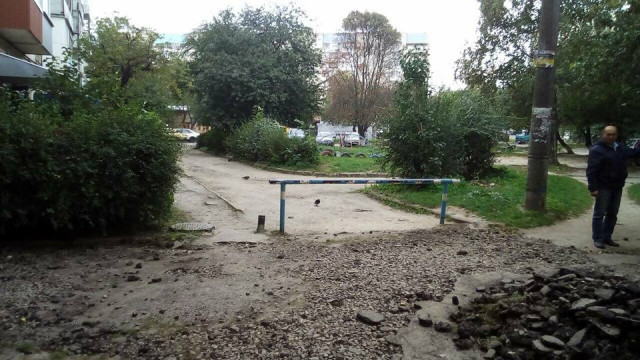 блоки, самовільно встановлені осбб, що загородили величезну неприватизовану територію між будинком та колізеєм!!!Прохання вжити заходів!