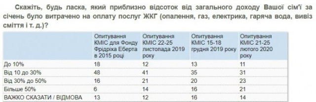 У лютому 2020 року 21% українців вказали, що витрачають на оплату послуг ЖКГ більше половини доходу сім’ї. У 2015-му році цей показник був менший в три рази – 6%.