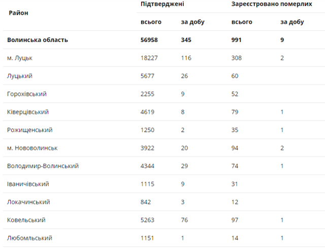 За добу на Волині – 345 нових випадків коронавірусу, 9 людей померли. Де виявили