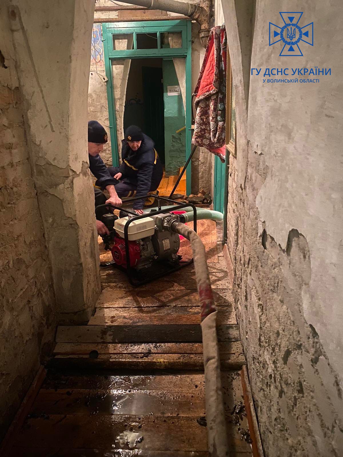 В містах Нововолинську та Володимирі рятувальники здійснили відкачування води з підвалів житлових будинків за допомогою мотопомпи.