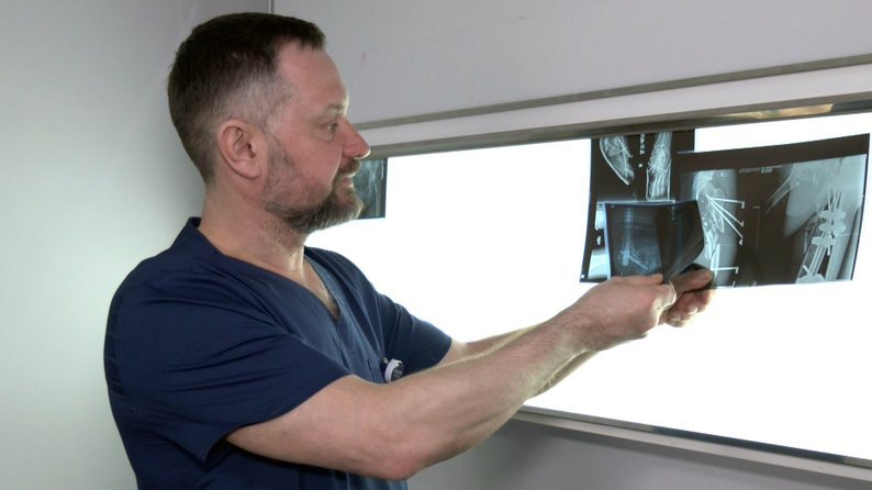 «У Кліщіївці під час бойового завдання наступив на міну та отримав поранення. Все добре зробили, позашивали, перелом зібрали, шпиці поставили», – каже військовослужбовець.Обласний центр ортопедії, травматології та артроскопії розрахований на 42 ліжко-місця, половину з них нині займають військовослужбовці, каже завідувач відділення Олег Каліщук.«Травми, з якими приїжджають з фронту, – відкриті, важкі з пошкодженнями м’яких тканин, судин, нервів, дефектами кісток. Тут треба залучати не лише бригади ортопедів-травматологів, а й судинних хірургів, нейрохірургів, надалі й пластичних хірургів. У нашій клініці це все є», – каже завідувач відділення.