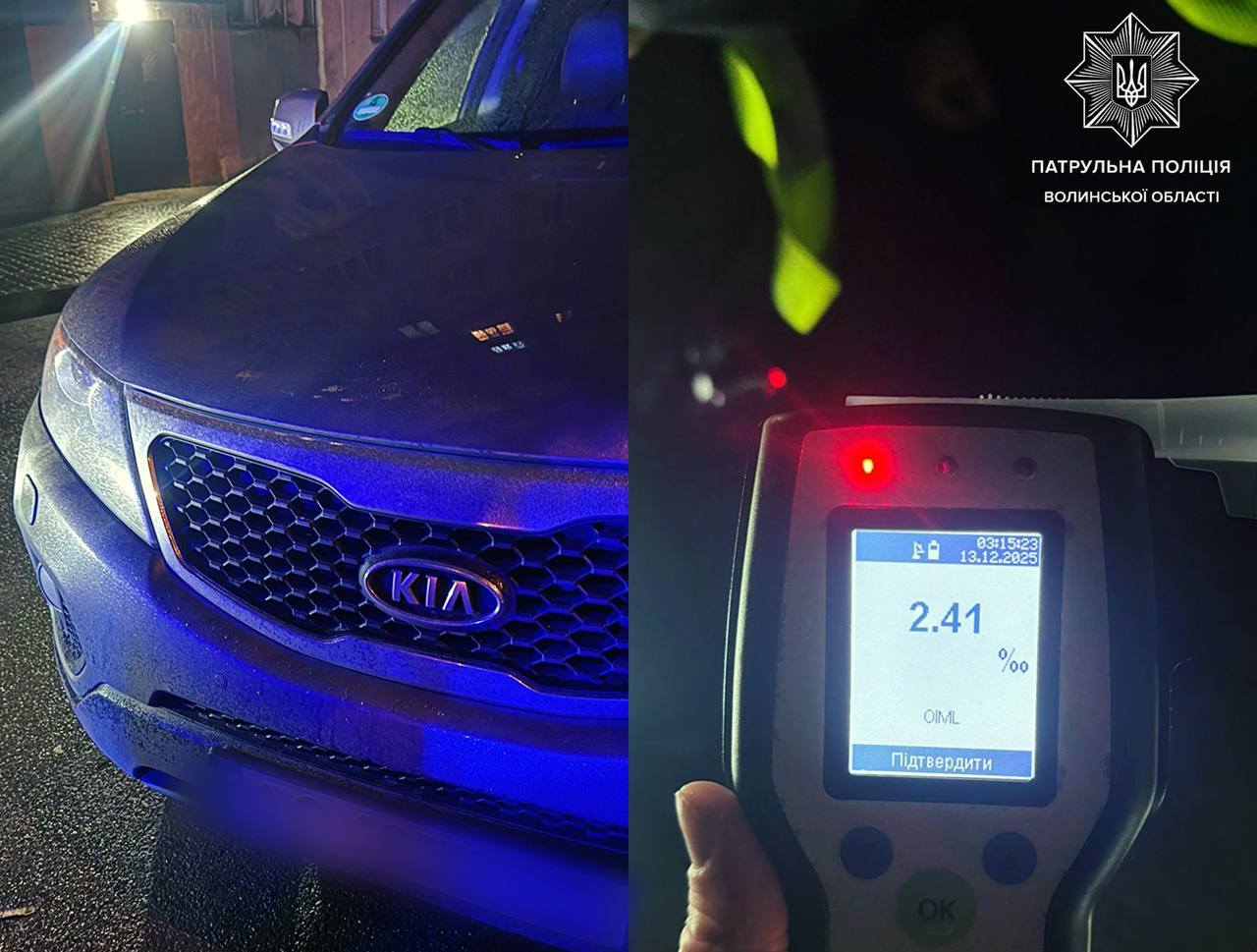 Здавалося б, ситуація мала бути вичерпана. Проте згодом патрульні знову зупинили цей самий автомобіль. За кермом перебував інший водій, який погодився пройти огляд на стан алкогольного сп’яніння. Результат – 2,41 проміле.