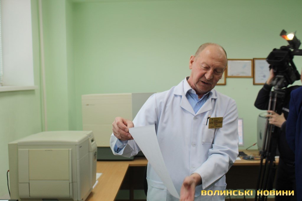 Зокрема, генеральний директор Волинського обласного дитячого територіального медичного об’єднання Сергій Ляшенко попросив, аби над придбаним апаратом, який працює на реактивах, міська влада взяла шефство та виділила кошти них. Тож радник міського голови Ігор Поліщук пообіцяв, що на найближчій сесії кошти виділять з перерозподілу вільних залишків.Потому учасники наради пішли оглянути роботу діагностичного лабораторного аналізатора. Як зазначив Сергій Ляшенко, це значний крок вперед, оскільки завдяки цьому апарату онкохворих дітей зможуть обслуговувати швидше та якісніше, незалежно від завантаженості поліклініки. З його слів, раніше більшість аналізів робили в ручному режимі, де велику роль грав людський фактор, а цей апарат здійснює обробку інформації і самоконтроль.Своєю чергою, лікар-лаборант Петро Сіліч розповів, що звичайна лабораторія видає 15 показників, натомість діагностичний лабораторний аналізатор - 33, по яких лікар ставить відповідний діагноз.