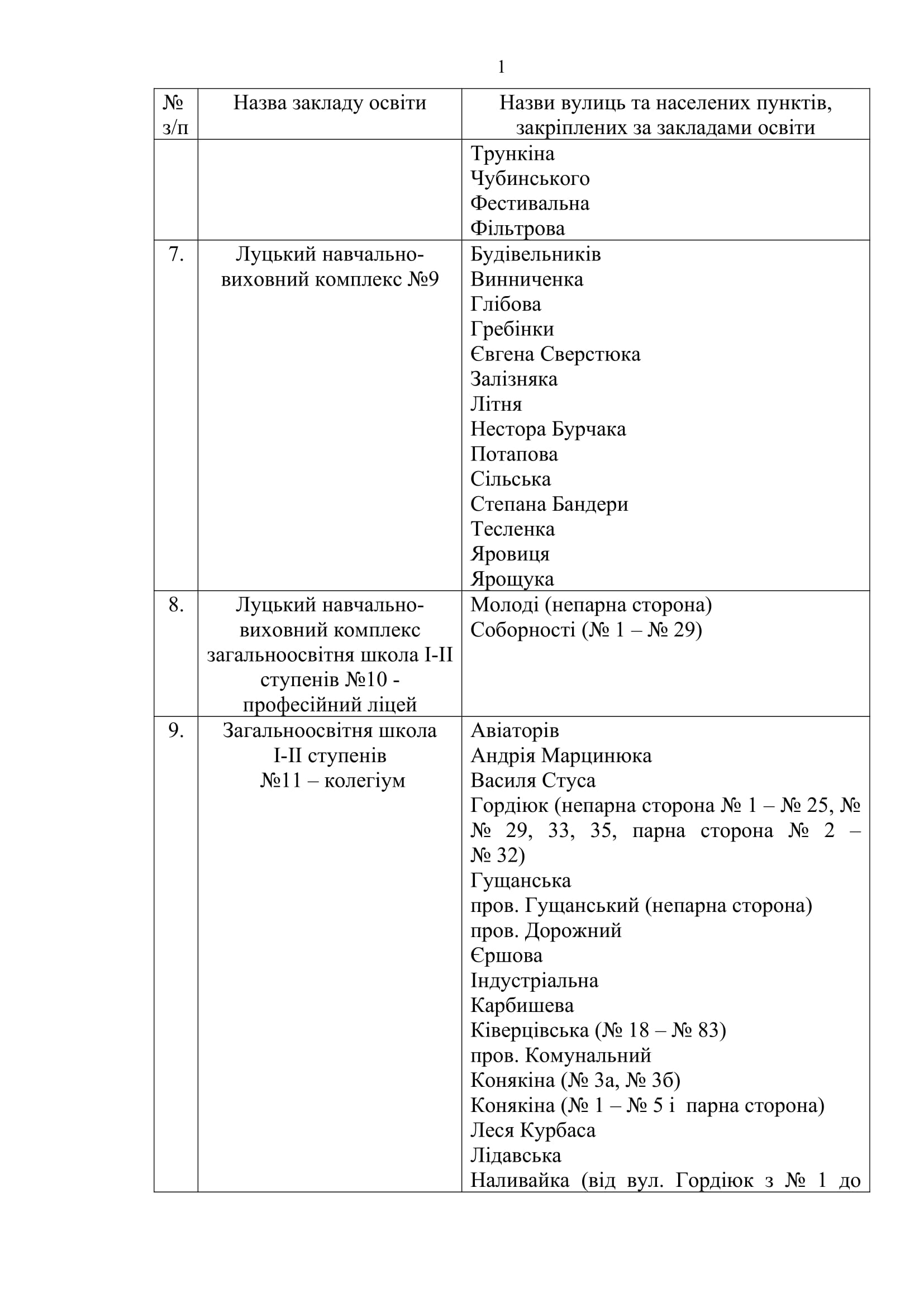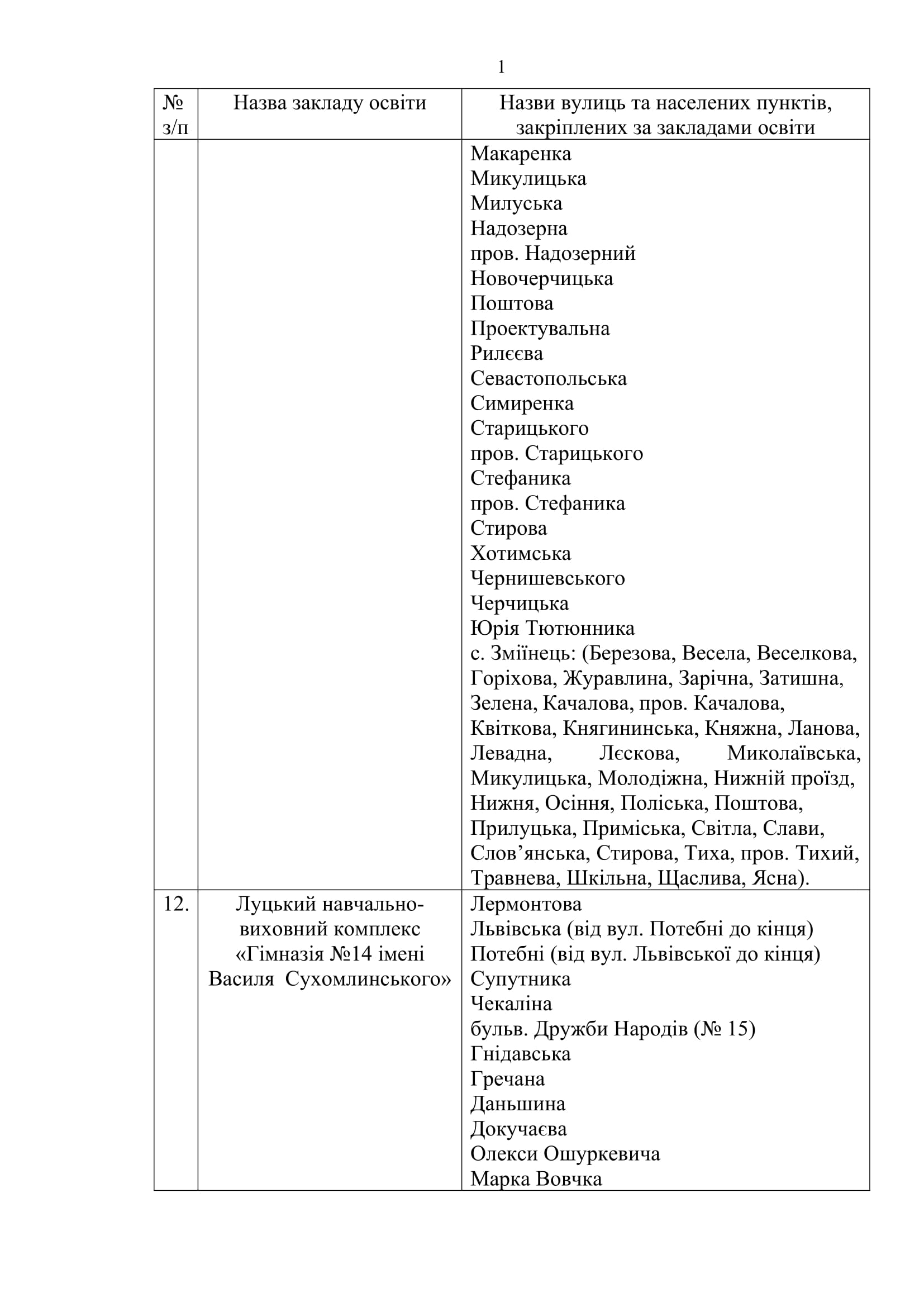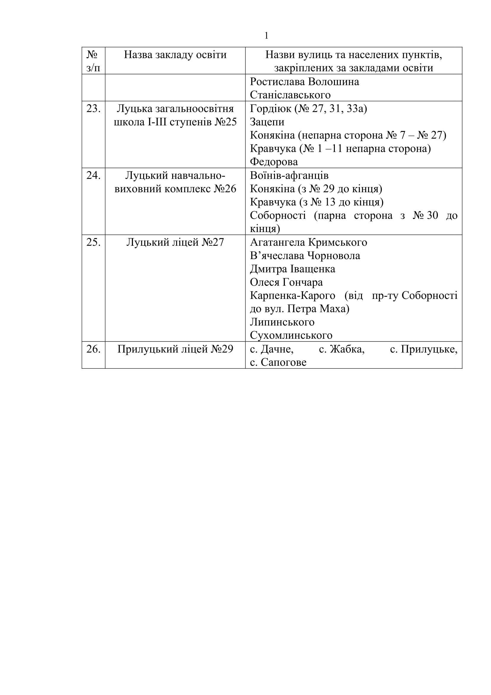У Луцьку закріпили території обслуговування закладів загальної середньої освіти.