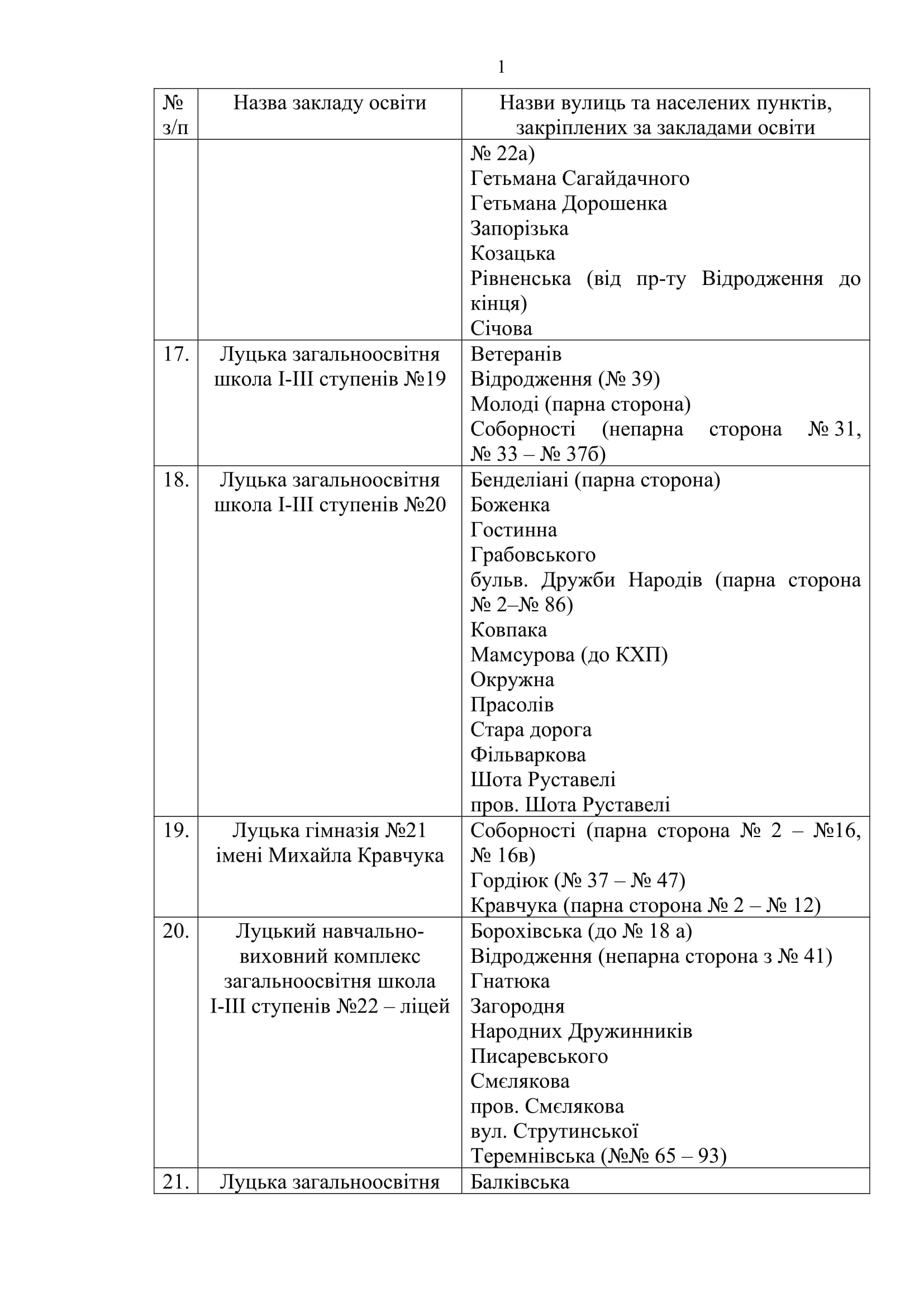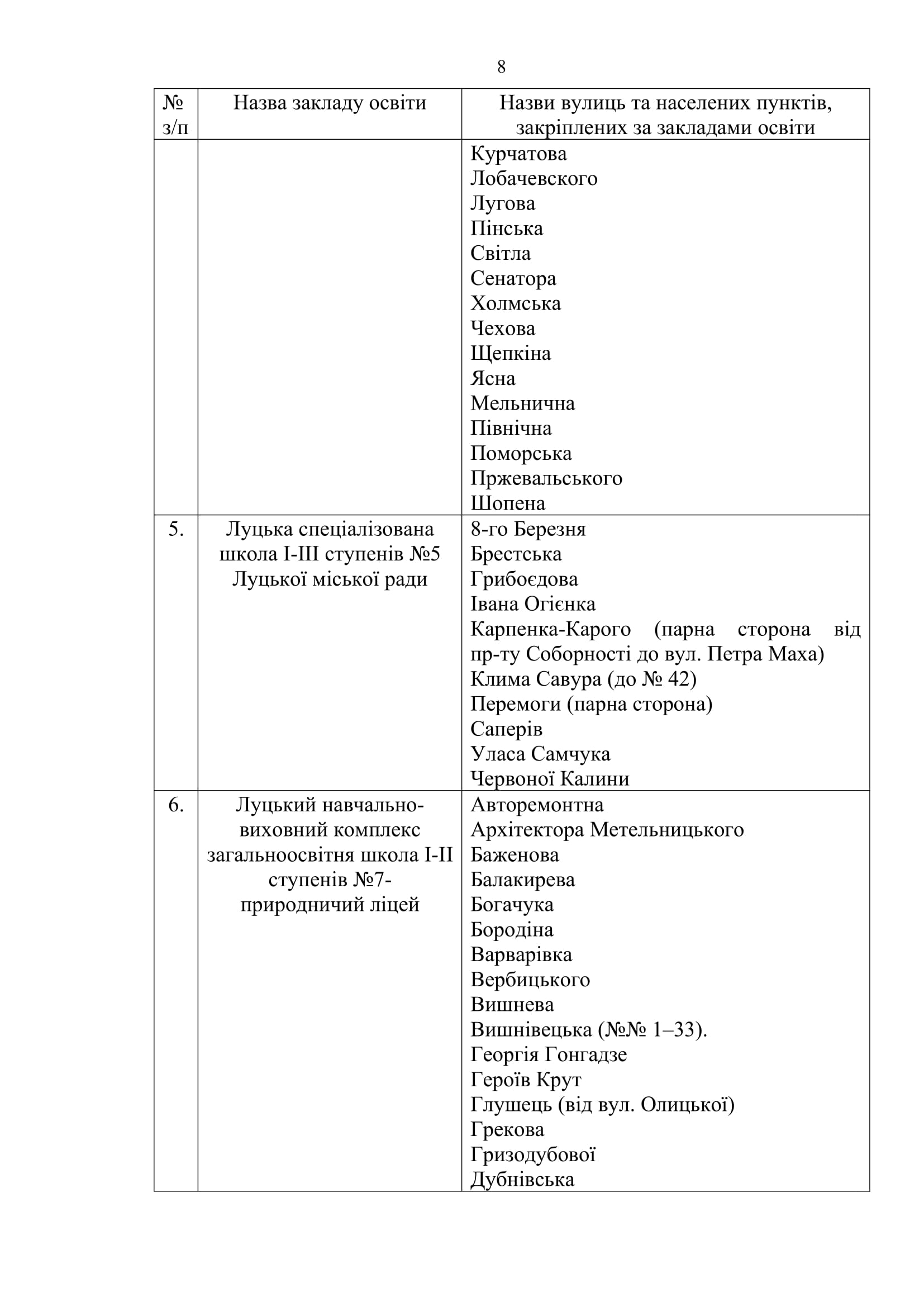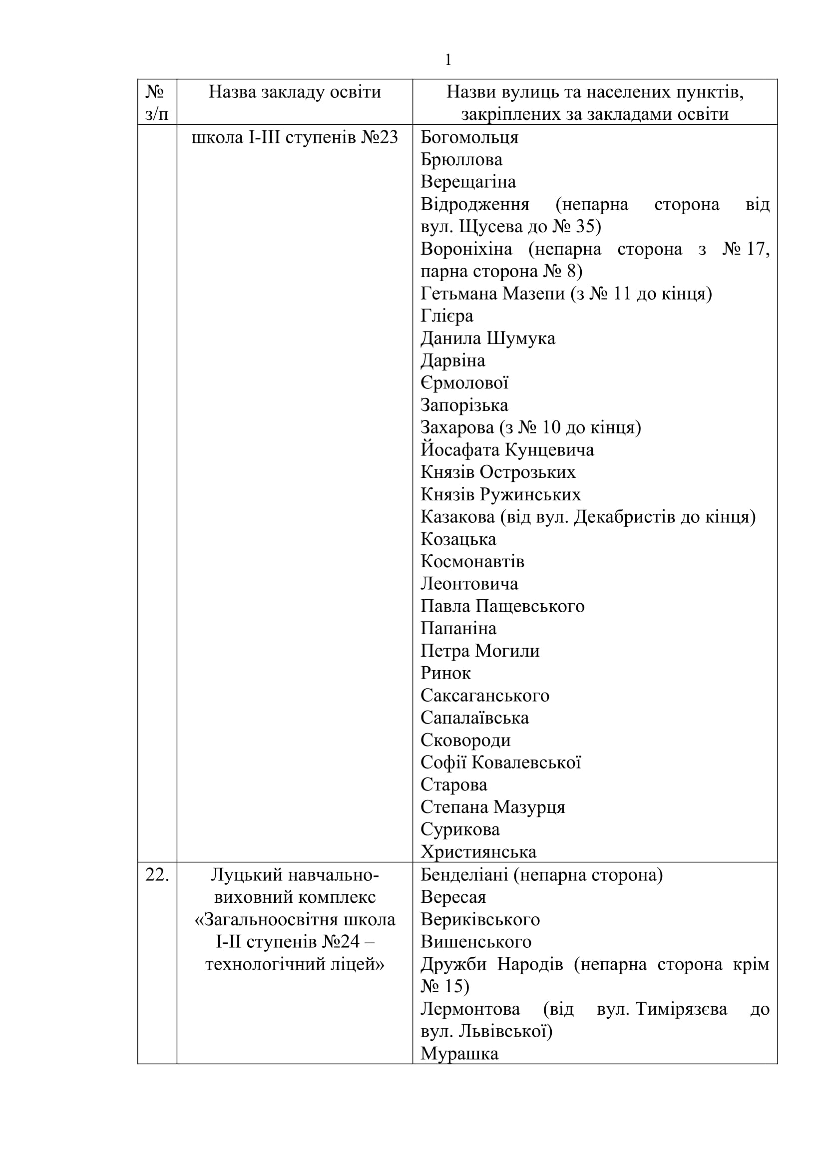 У Луцьку закріпили території обслуговування закладів загальної середньої освіти.