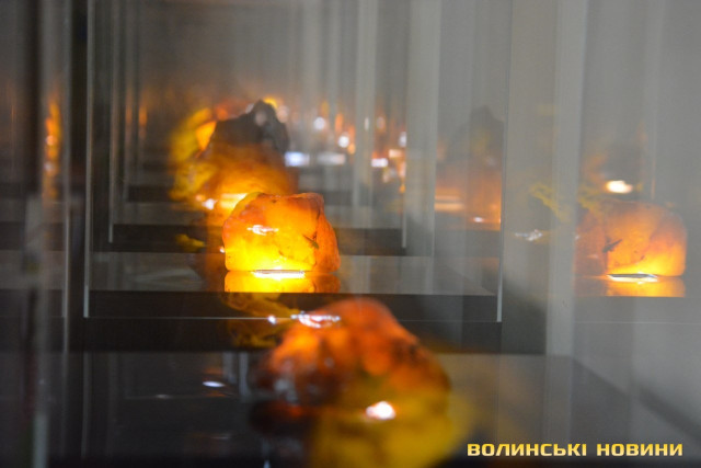 «Це – результат місячної роботи підприємства. Ми не могли показати все, що вдалося видобути, бо довелося б заставити всі коридори на всіх поверхах, тож відібрали 40 зразків, які відсьогодні і до п’ятниці зможе побачити кожен охочий. Ми спеціально замовили стійки з підсвіткою, щоб підкреслити всю красу каміння, бо саме по собі воно є непрозоре. До слова, днями в нас була перевірка з Гемцентру Міністерства фінансів (Державний гемологічний центр України проводить експертизу діамантів, дорогоцінного, напівдорогоцінного і декоративного каміння, проводить їх експертну оцінку – ред.). Фахівці були приємно вражені і відзначили високу якість нашого каменю», – пояснив Капустюк.ЧИТАТИ ЩЕ: НА ВОЛИНІ ДУЖЕ ЯКІСНИЙ БУРШТИН: ЯК КОМУНАЛЬНЕ ПІДПРИЄМСТВО ВИДОБУВАЄ СОНЯЧНИЙ КАМІНЬ