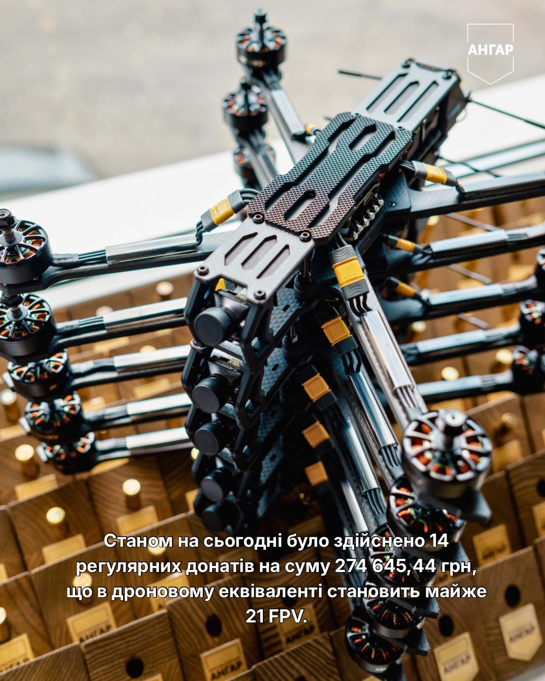 Вже було здійснено 14 автоматичних і регулярних донатів на суму 274 645,44 грн, що в дроновому еквіваленті становить майже 21 FPV.
