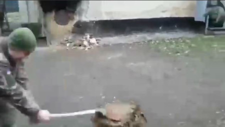 «Сьогодні покажу, що роблять з телефонами в армії, коли знаходять. Ось це строковик ... Покажи строковика (звертається до людини, що знімає те, що відбувається – ред.). Молодий військовослужбовець. Носив із собою телефон в кишені », – сказав офіцер на початку ролика.