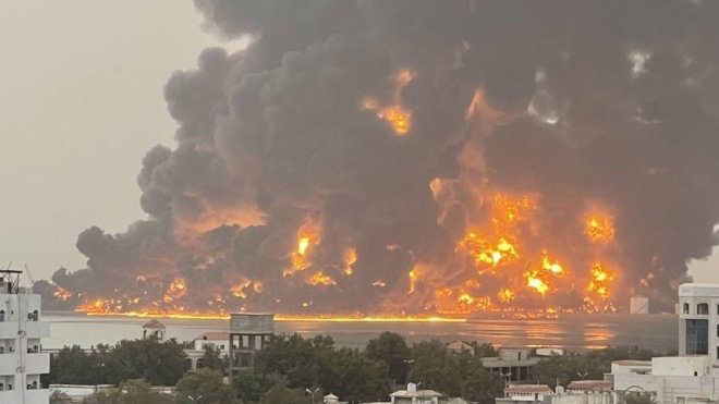 “Israeli aggression on Hodeidah Governorate and a fire in Yemen's main port.