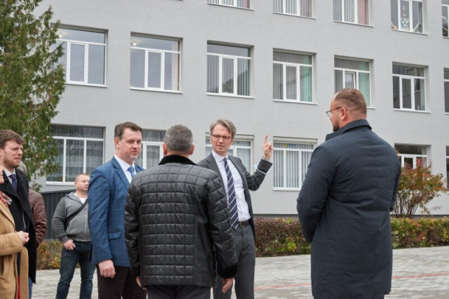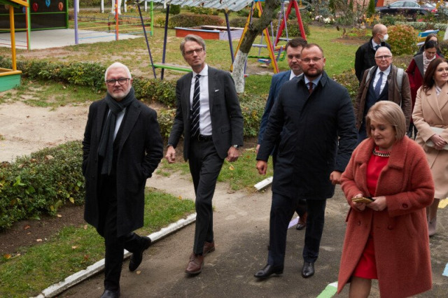 Сьогодні Луцький міський голова Ігор Поліщук разом з інвестиційним директором NEFCO Амундом Бейтнесом, Надзвичайним та Повноважним послом Швеції в Україні Тобіасом Тибергом, Надзвичайним та Повноважним послом Норвегії в Україні Еріком Сведалом, провідним менеджером Східноєвропейського партнерства з питань енергоефективності та екології Катериною Стасюк та консультантом SWECO Гуннаром Барку оглянули результати проведених робіт у бюджетним закладах.Першим об’єктом, який відвідали гості, став заклад дошкільної освіти № 32. Тут повністю утеплено дах, фасад, фундамент, замінено вікна та елементи освітлення, встановлено ІТП. Ці всі заходи дали можливість суттєво зменшити використання енергоресурсів, покращити мікроклімати усередині приміщення, адже тепер у всіх приміщеннях садочка тепло. Окрім цього, фасад будівлі має цікаве оформлення, яке подобається дітям і їх батькам, та став окрасою мікрорайону.Читати також: Економія коштів і тепла: в Луцьку модернізували десятки громадських будівель за грантові гроші