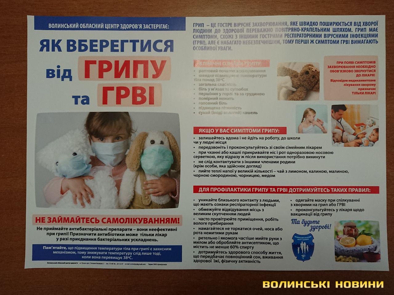 Вищі показники захворюваності від середньообласного (503 осіб на 100 тисяч населення) зафіксовано в Луцьку – 753,8, Горохівському – 710,3, Камінь-Каширському – 599,2 та Маневицькому районах – 573,0. В Україні показник захворюваності на ГРВІ та грип перевищив епідемічний поріг на 8%. Локальне перевищення зафіксовано у 8 областях України. Також зареєстровано 4 летальних випадки у хворих із ускладненнями ГРВІ», - розповіла Наталія Янко.