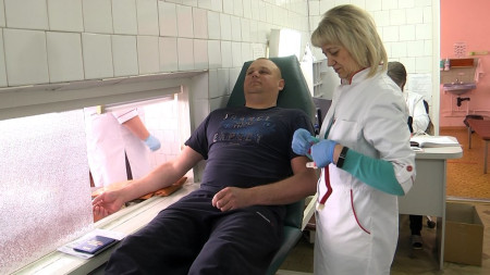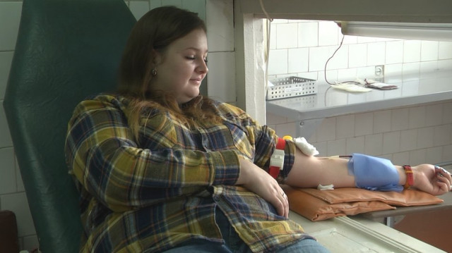 Медсестра Наталія Булавчук розповідає: щодня здати кров приходять до двадцяти донорів: «Молодці люди. Згуртувалися. Приходять і ті, що вже часто здають, і дуже багато молоді. Всякі бувають випадки. Кому погано робиться, кому ні, але більшість молодці».