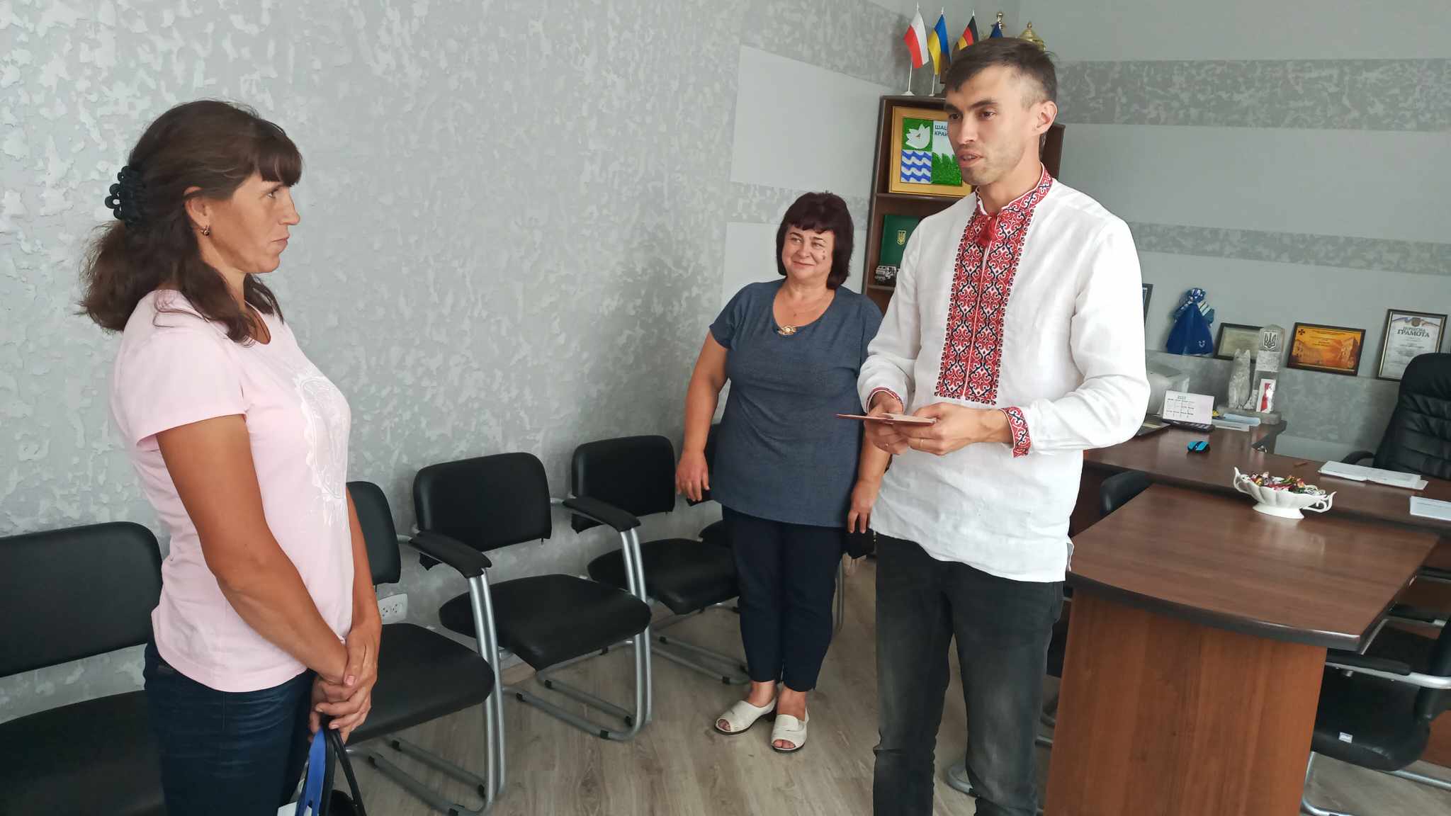 Шацький селищний голова Сергій Карпук вручив посвідчення «Мати-героїня» і нагрудний знак мешканці села Хрипськ Тетяні Бруско.