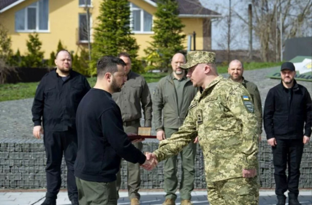 У неділю Президент Володимир Зеленський взяв участь у піднятті Державного прапора України на флагштоку Меморіалу пам’яті захисників Бучанської громади і вручив нагороди воїнам ЗСУ, Національної гвардії, СБУ, поліцейським та рятувальникам.