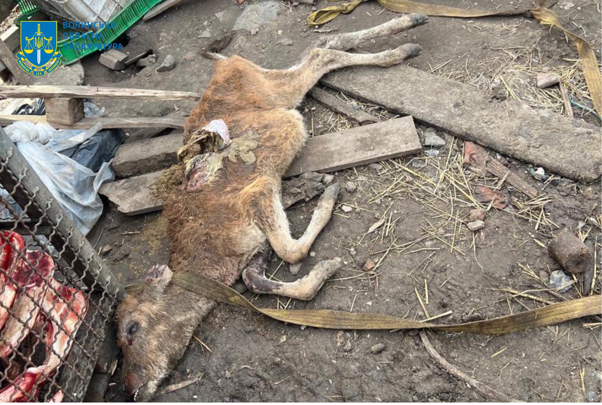 За процесуального керівництва Спеціалізованої екологічної прокуратури та Волинської обласної прокуратури припинено незаконну діяльність суб’єкта господарювання на території Луцького району, який без передбаченого законодавством дозволу, в антисанітарних умовах, в порушення санітарних правил і норм, здійснював в межах населеного пункту забій великої рогатої худоби.