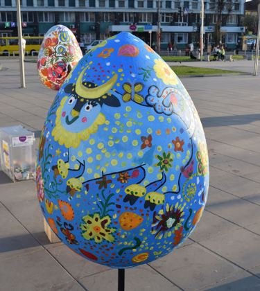Усіх охочі разом із художниками розмалювали два великих яйця.