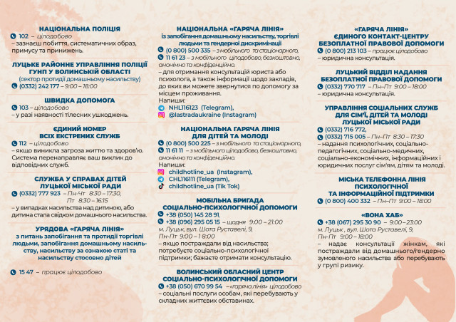 «Ми впевнені, що ви небайдужі до теми домашнього насильства. Ви – це ті люди, які можуть не лише проінформувати про діяльність проєкту, але і несете велику місію, адже ваші клієнти вам довіряють, і, можливо, ви єдині, кому вони можуть розповісти про проблеми в сім’ї. Тому головна ідея нашого проєкту полягає у поширенні знань, які можуть врятувати життя/здоров’я Ваших клієнтів/клієнток», – зазначають організатори.Основний захід проєкту відбудеться 27 листопада з 11:00 до 14:00 у Луцьку (адресу повідомлять зареєстрованим учасникам). На ньому фахівці детальніше розкриють юридичні та психологічні аспекти протидії домашньому насильству.