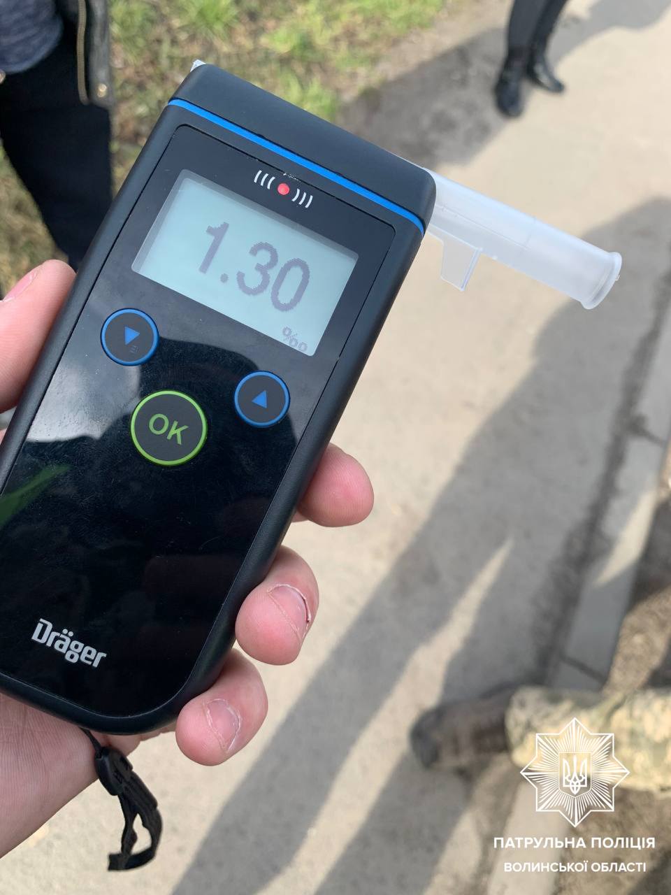 У результаті огляду поліцейські зафіксували у водія 1,30 проміле, що перевищує допустиму норму майже у 7 разів.