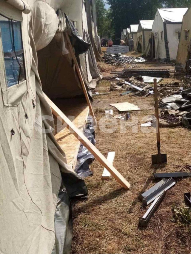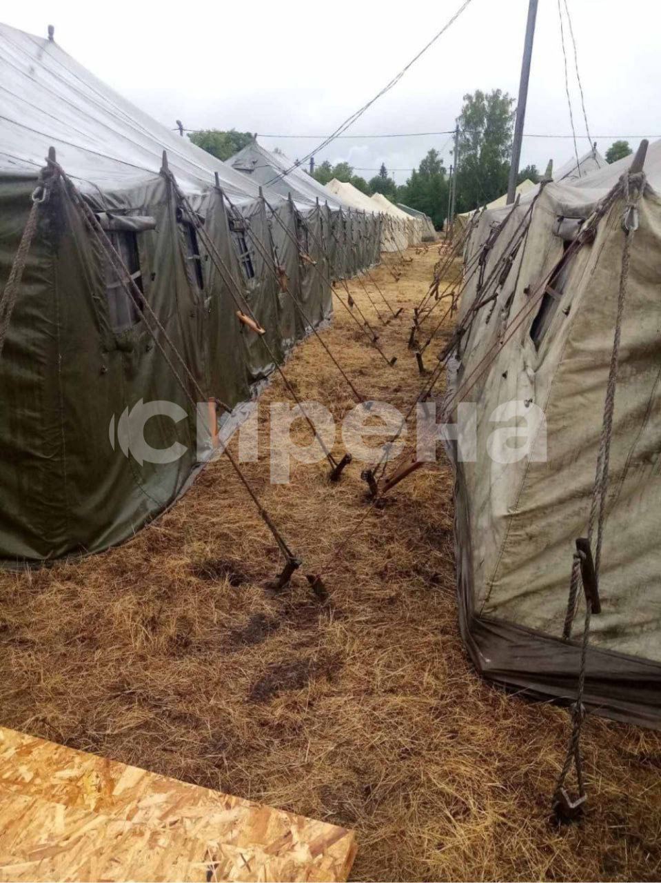 Канал повідомляє, що фото зроблені місцевим жителем. На них можна помітити намети М-30, а всередині – дерев’яні нари і настили. В одному наметі може розміститися до 60 осіб, а на встановлення кожного витрачається не більше 30 хвилин.