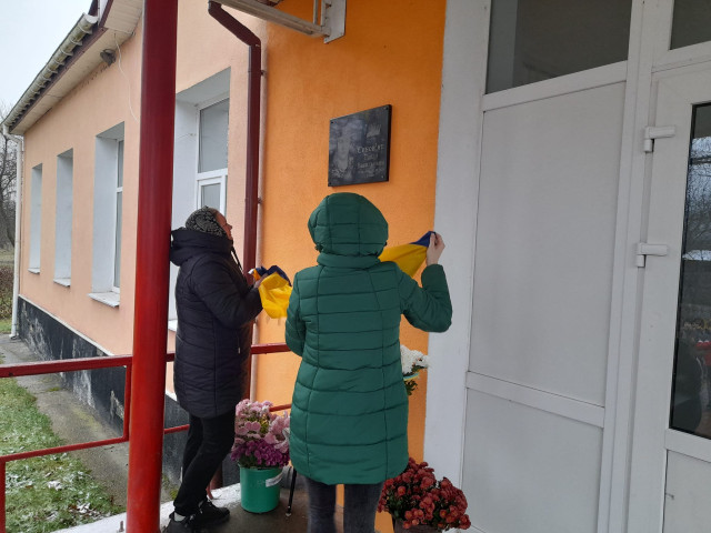 Почесне право відкрити Меморіальну дошку надали мамі та сестрі Героя.