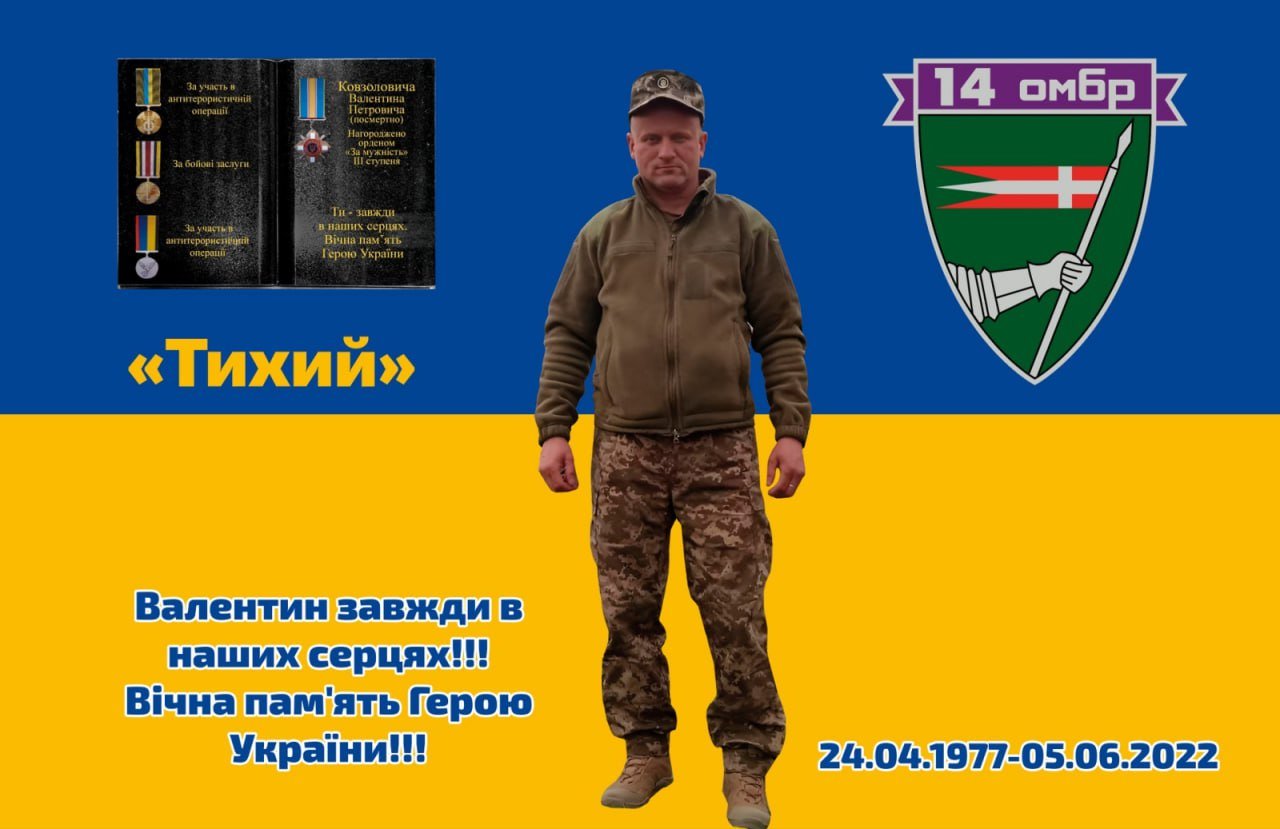 Рідні просять підтримати петицію про присвоєння звання «Героя України» (посмертно) хороброму захиснику нашої держави, сержанту 14 окремої механізованої бригади імені князя Романа Великого, 3 батальйон, в/ч А1008, Ковзоловичу Валентину Петровичу, 24.04.1977 року народження.