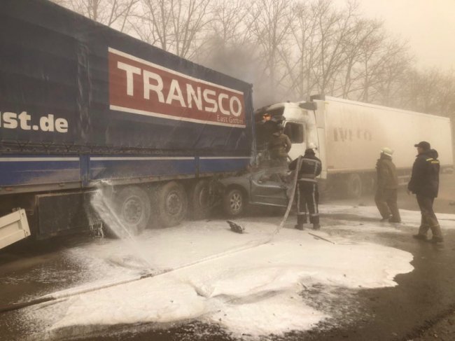 Встановили, що ДТП сталася внаслідок зіткнення 4 вантажних автомобілів: VOLVO, 2 DAF, газовоза MAN, і 2 легкових: Pegout 308, BMW 525.