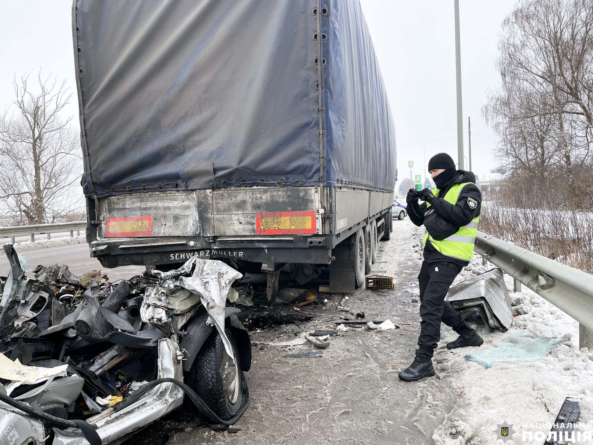 Слідчо-оперативна група ГУНП на місці події встановила, що 54-річний киянин, водій автомобіля «Dacia Logan», із невстановлених поки причин допустив зіткнення із напівпричепом попутної вантажівки «DAF» під керуванням 65-річного жителя Волинської області.