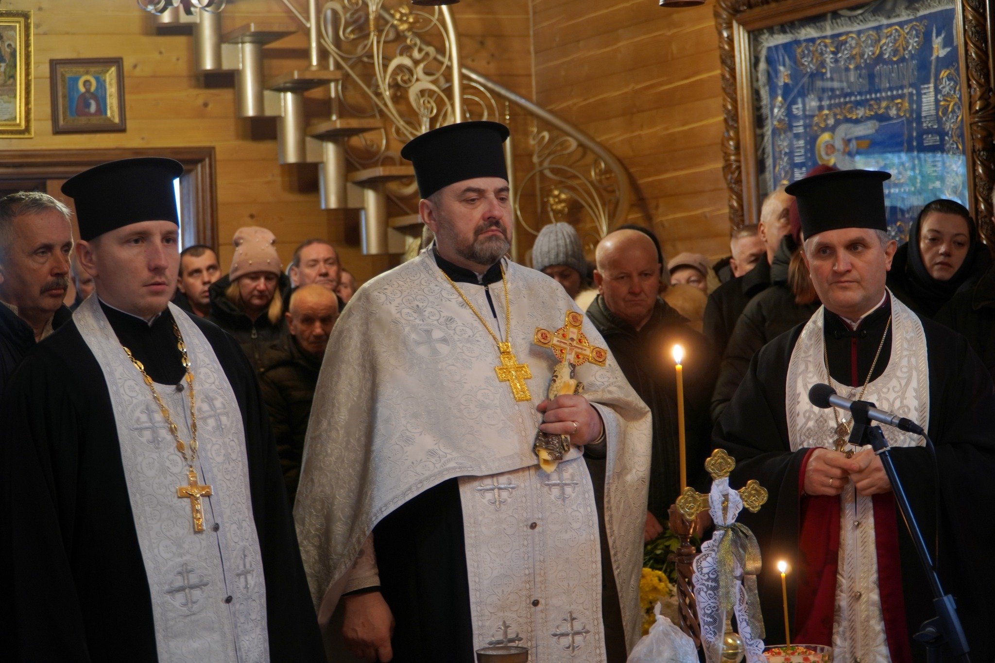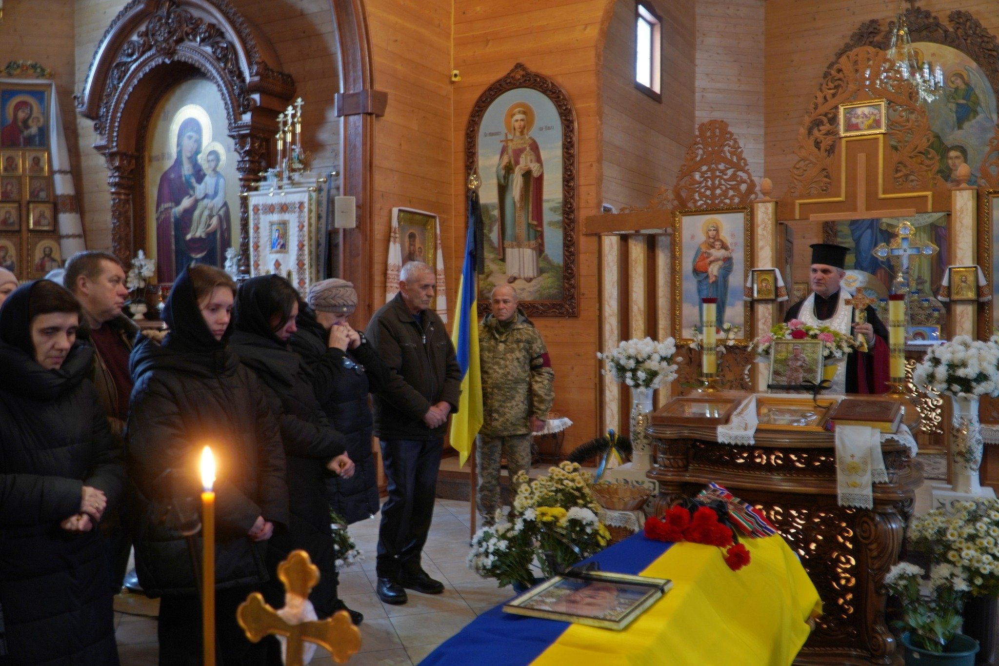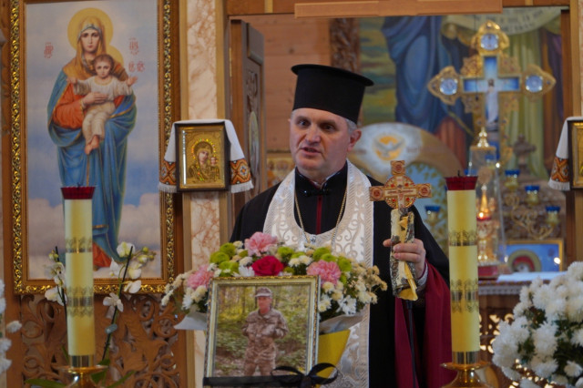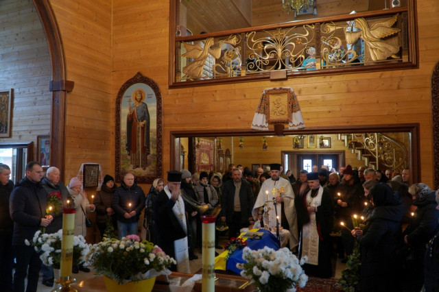 У храмі Святих Віри, Надії, Любові та їх матері Софії священники відслужили панахиду за упокій душі воїна. Плакали рідні, схиляли коліна близькі, друзі та знайомі, клали незліченну кількість квітів до домовини, як останній дарунок та знак шани Герою. У воїна залишились дружина, двоє доньок, рідна сестра, яких уже із неба оберігатиме їхній чоловік, батько та брат, будучи надійним щитом та охоронцем зверху.