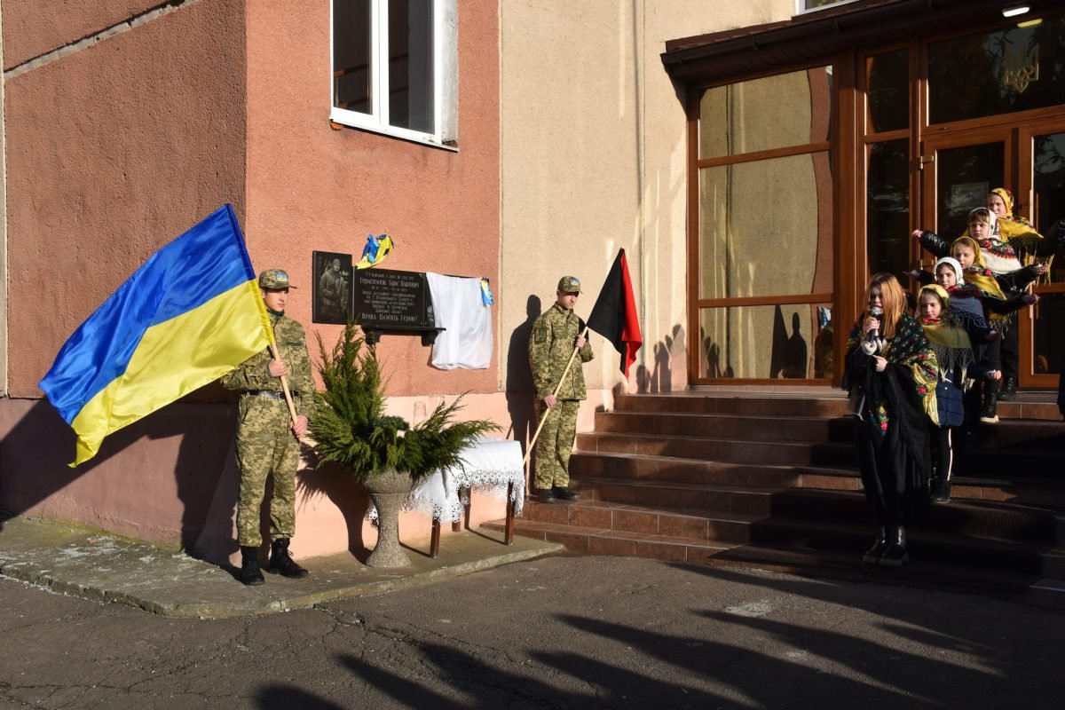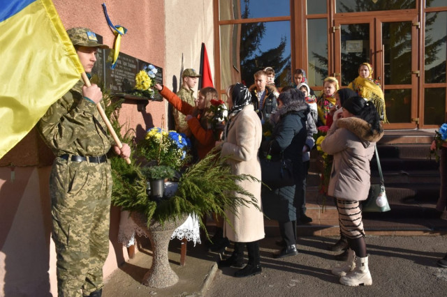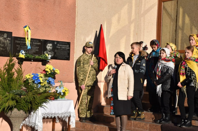 У Городищі Луцького району відкрили меморіальну дошку загиблому рік тому воїну Олегові Корецькому. Її встановили на Городищенському ліцеї, у якому в 2002-2013 роках навчався полеглий захисник України.