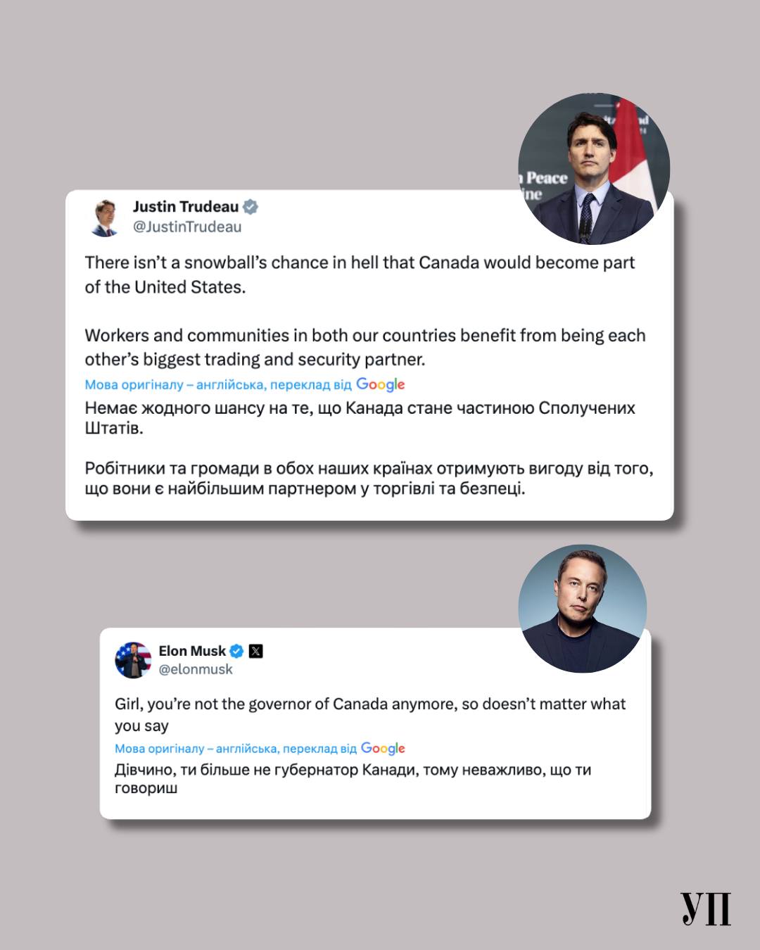 Зокрема, Маск підіграв глузуванням Трампа про Канаду як «51-й штат» і Трюдо як «губернатора штату».